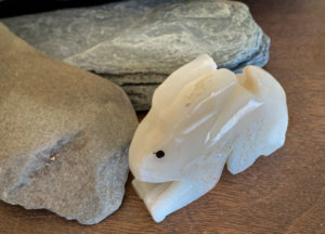 I’m surprised how affected I am – sadness trails me throughout the day. I check frequently out my windows, throw more seed in the afternoon and evening, just in case she happens to be nearby. Nothing. When she doesn’t appear the third morning, I go through my drawer of animal figures to find the white soapstone rabbit I bought in the Southwest, and place it on my dresser. I murmur that I am sorry she is gone.